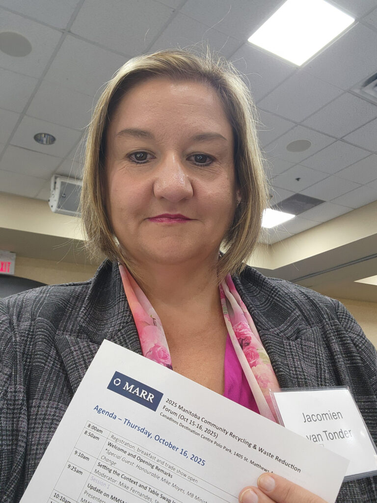 Jacomien recently attended the MARR-Manitoba Annual Community Recycling & Waste Reduction Forum in Winnipeg. This esteemed annual event is tailored for municipalities, Indigenous communities, recycling and waste management service providers, Producer Responsibility Organizations(PROs), and professionals dedicated to advancing effective local and regional waste reduction initiatives (https://marrmb.com/events/).