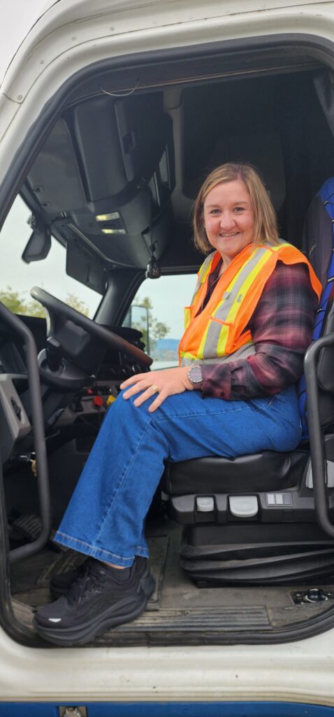 Pro tip: Jacomien absolutely slays in that semi—it’s like she was born to command the cab in a power suit of denim and diesel. KPI alert: Employee morale through the roof! Perhaps it’s time to greenlight her Class 1 certification—think of it as upskilling for the C-suite of the open road. Who’s with me on nominating her for Driver of the Quarter?